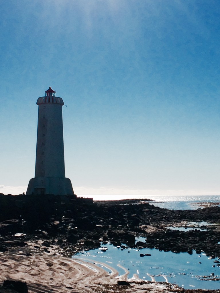 Akranes was a nice place for a calm day like that spring one. We spent the day wandering, admiring the sea, the infinite mountains, and the small farms with their colourful silos. We eventually arrived at this amazing lighthouse. The inside of that lighthouse was quite spectacular in itself; everything was painted white, the staircases were perfectly symmetrical, there were paintings and other art pieces on every wall, at every corner, and gorgeous old wooden furniture. The best part was climbing all the way up to the top. That moment is indescribable. The smell of the sea, the wind hitting our faces, and the view: blue, blue, blue… kilometers of blue. Furthermore, the acoustic inside was one of the best. E beautifully interpreted Simon & Garfunkel’s “For Emily, Whenever I Find Her”, giving me the nicest chills. We finished our visit with a talk with the lighthouse owner; a peculiar, yet quite sympathetic, man.